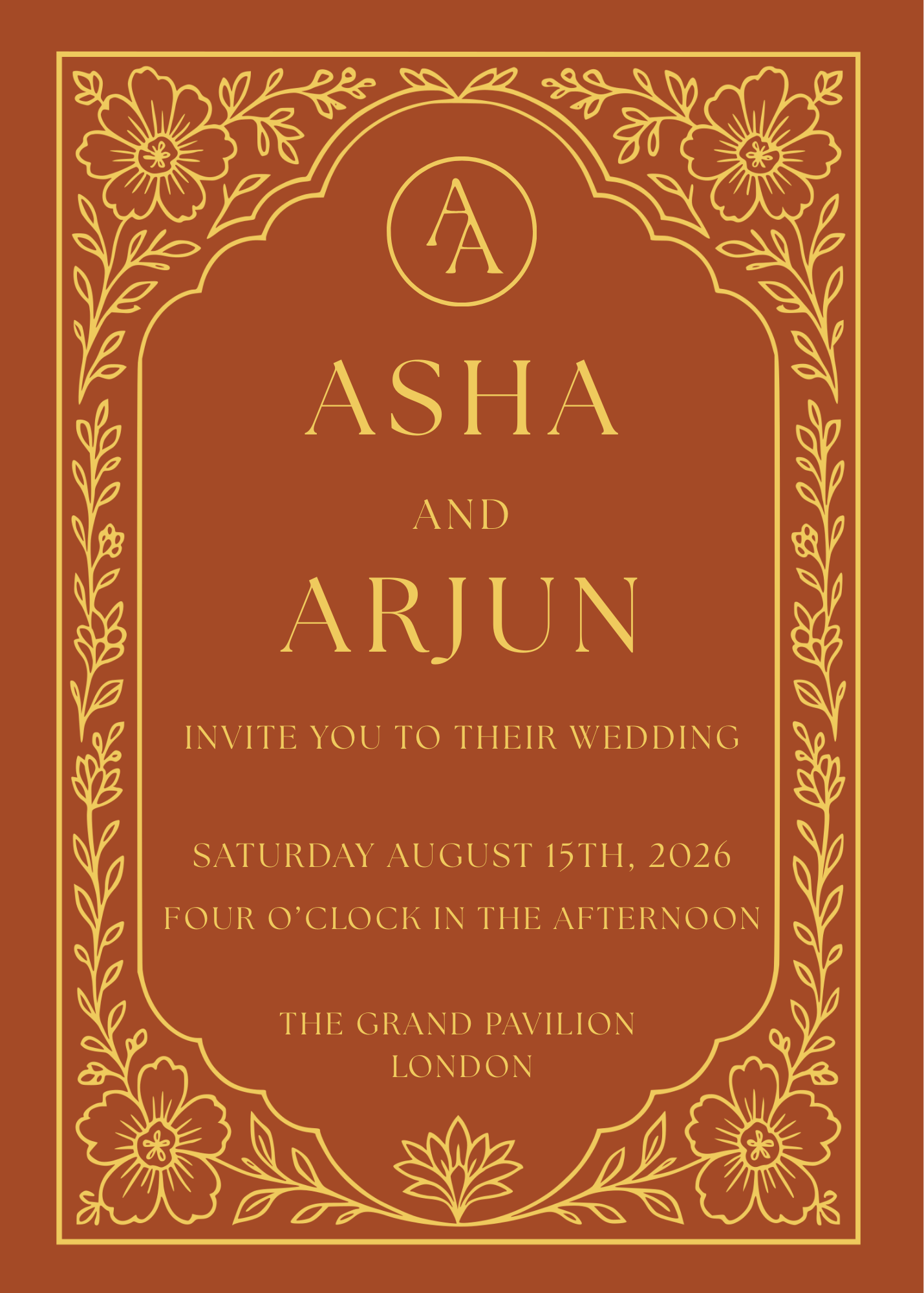 Introducing our Terracotta Invitation Suite - A modern South Asian inspired invitation suite pairing rich jewel tones with elegant gold detailing, finished with an ivory envelope and subtle marble liner.